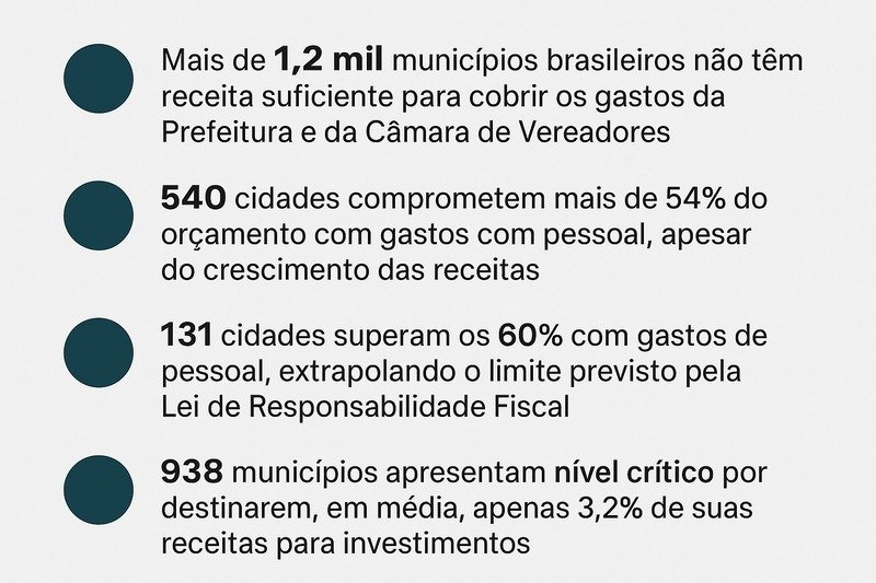Apesar do avanço, a Firjan alerta que a ausência de um plano nacional de desenvolvimento compromete a qualidade e a eficiência desses gastos. Além disso, 938 cidades — o equivalente a 18,3% do total — destinaram, em média, apenas 3,2% da receita para investimentos e foram classificadas em nível crítico.